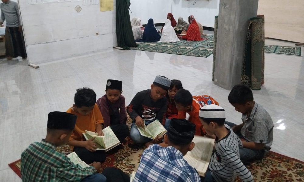 Antusias para warga mulai dari anak-anak dan dewasa menggelar Tadarus usai melaksanakan shalat Isya sekaligus Tarawih dan Witir di Mushalla Al-Muhajirin, Kelurahan Kwala Begumit. (Ist)