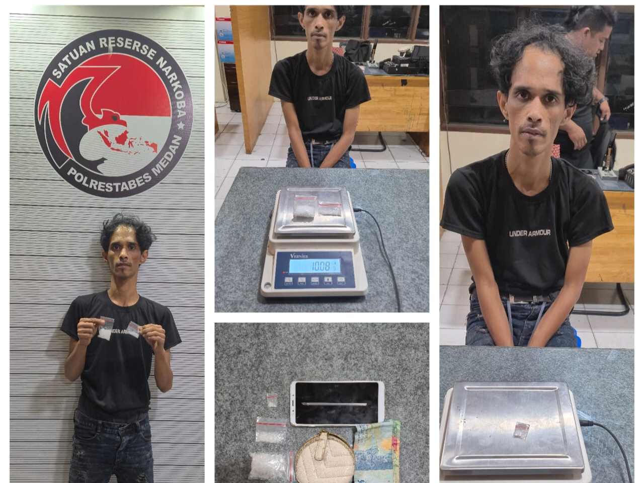 ARMADA BERITA | MEDAN – Satuan Reserse Narkoba Polrestabes Medan berhasil menangkap seorang pengedar sabu berinisial RHH (35) di Jalan Bromo, Gang Jermal 2, Kelurahan Binjai, Kecamatan Medan Denai. Pelaku yang sudah masuk dalam target operasi ini sempat berusaha kabur lewat atap rumah sebelum akhirnya ditangkap petugas, Selasa (16/9/2025).