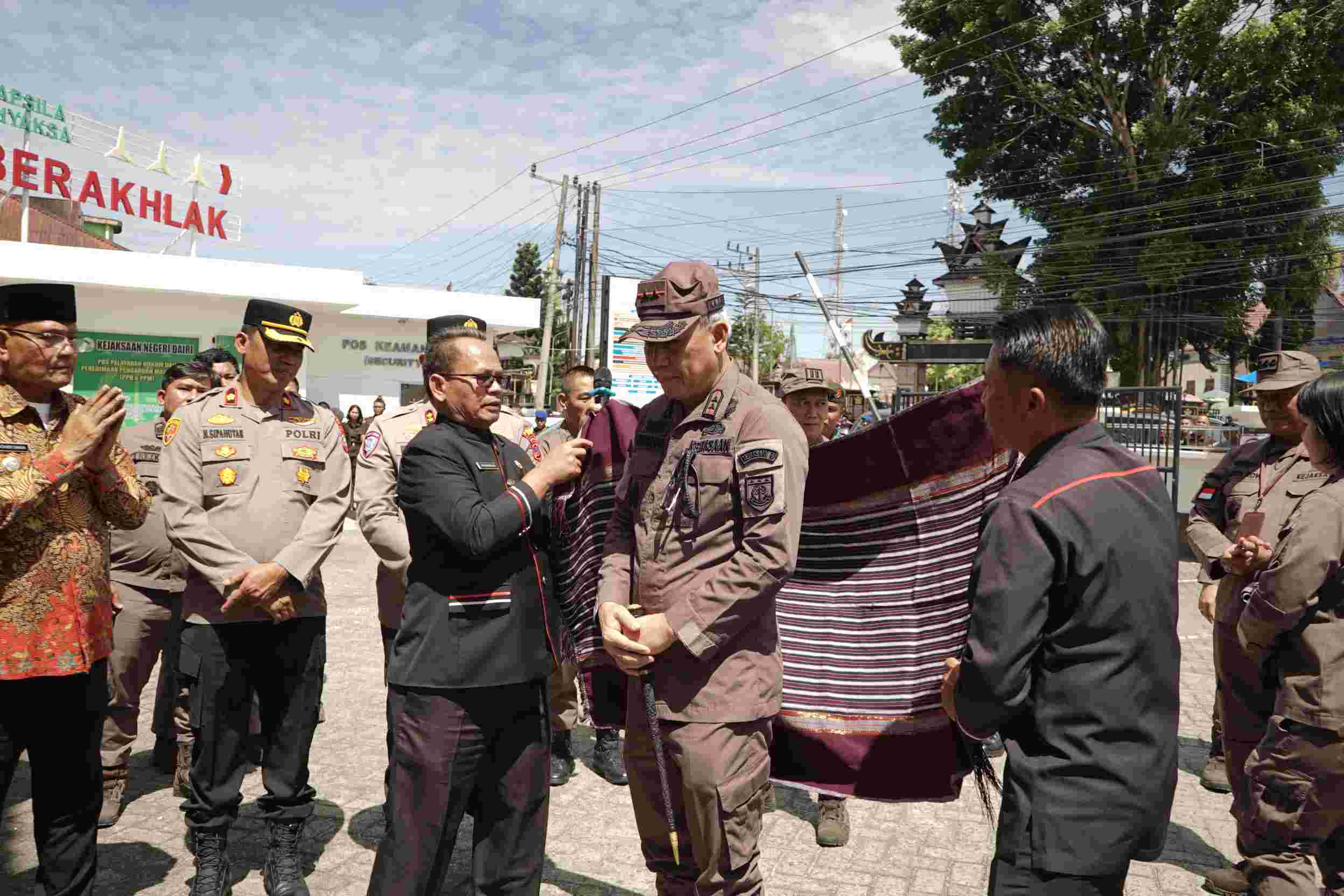 Didampingi Asisten Intelijen Andri Ridwan, Asisten Pembinaan I Nyoman Sucitrawan, Kabag TU Rahmad Isnaini, serta Koordinator Bidang Intelijen Yos A Tarigan, Kajati disambut meriah dengan tari-tarian adat, ulos kehormatan, dan plakat dari Bupati Dairi Vickner Sinaga dan perwakilan Bupati Pakpak Bharat.