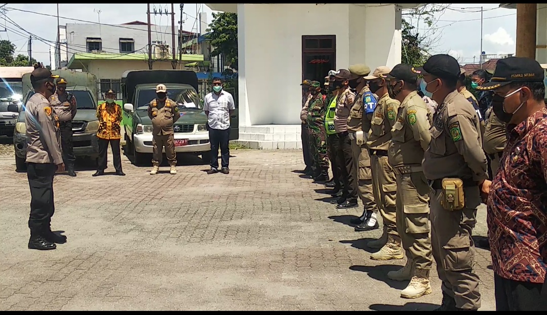Tim gabungan Satpol PP dan Koramil 02/MT serta Polsek Medan Timur melakukan razia masker dan penerapan protokol kesehatan dijalan HM. Yamin, Simpang GB. Yoshua. Kamis ( 17/9/2020).