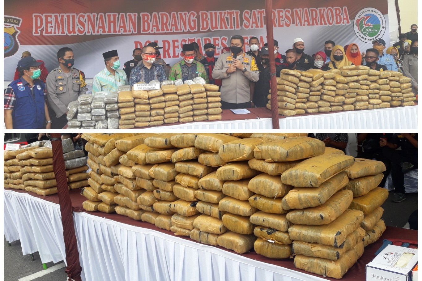 Barang berbahaya itu, jelas Kapolrestabes Media didampingi Kasat Narkoba, AKBP Ronni Nicolas Sidabutar, jika dipasaran harganya mencapai Rp 2.000.000 maka kalau dikalikan dengan 358 kilo gram hasilnya Rp.770.000.000.