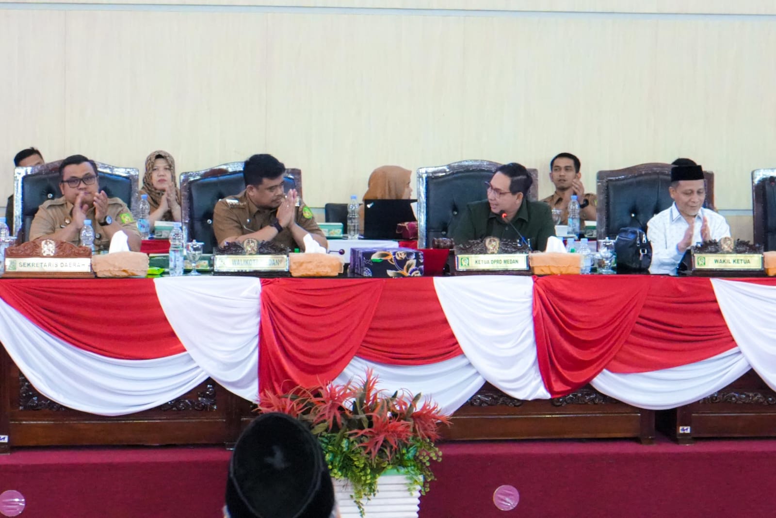 Rapat paripurna yang berlangsung Senin (10/2/2025) di gedung dewan itu dipimpin Ketua DPRD Medan Wong Chun Sen dan dihadiri Wali Kota Medan Bobby Nasution, segenap anggota dewan, pimpinan perangkat daerah. Hadir juga Rico Waas dan Zakiyuddin Harahap, sebagai Wali Kota dan Wakil Wali Kota terpilih dan yang selanjutnya diumumkan hasil penetapannya oleh DPRD Kota Medan.