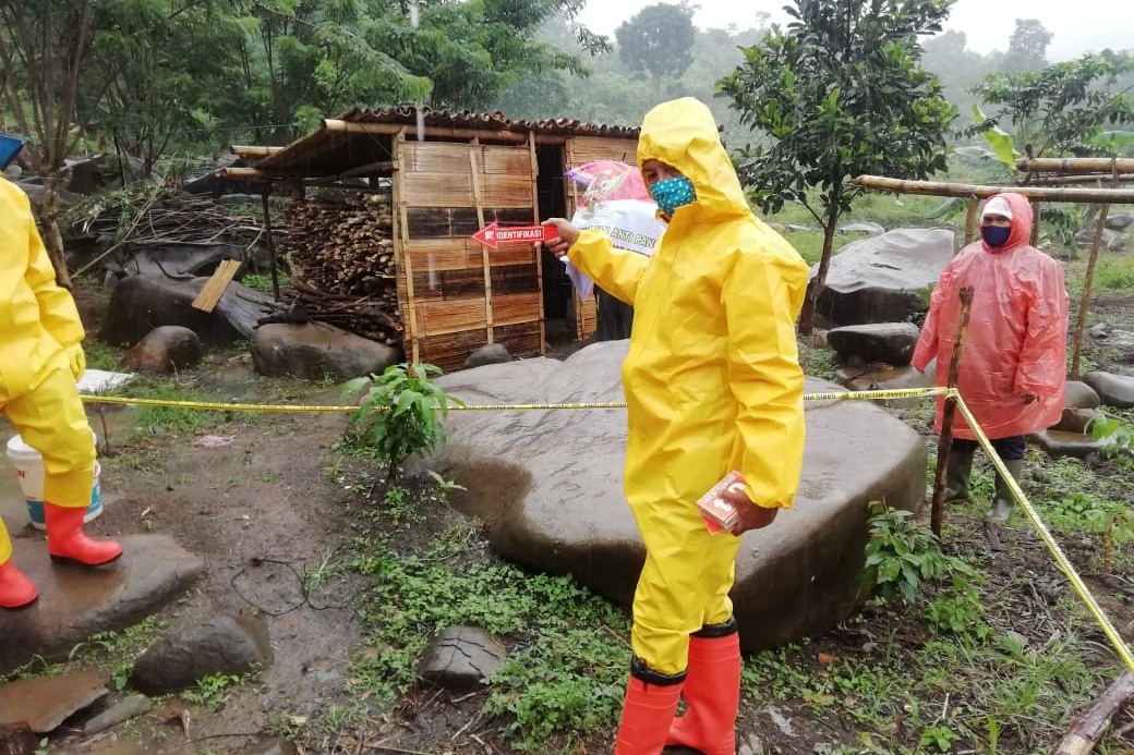 “Saat ditemukan, korban ditemukan sudah dalam kondisi terbakar. Kita sudah mengamankan sejumlah barang bukti, antara lain satu potongan bambu yang ada bercak darah, satu lampu teplok kecil, sebuah jam tangan yang sudah terbakar, tiga bilah parang, satu bundel gulungan yang sudah terbakar,” terangnya.