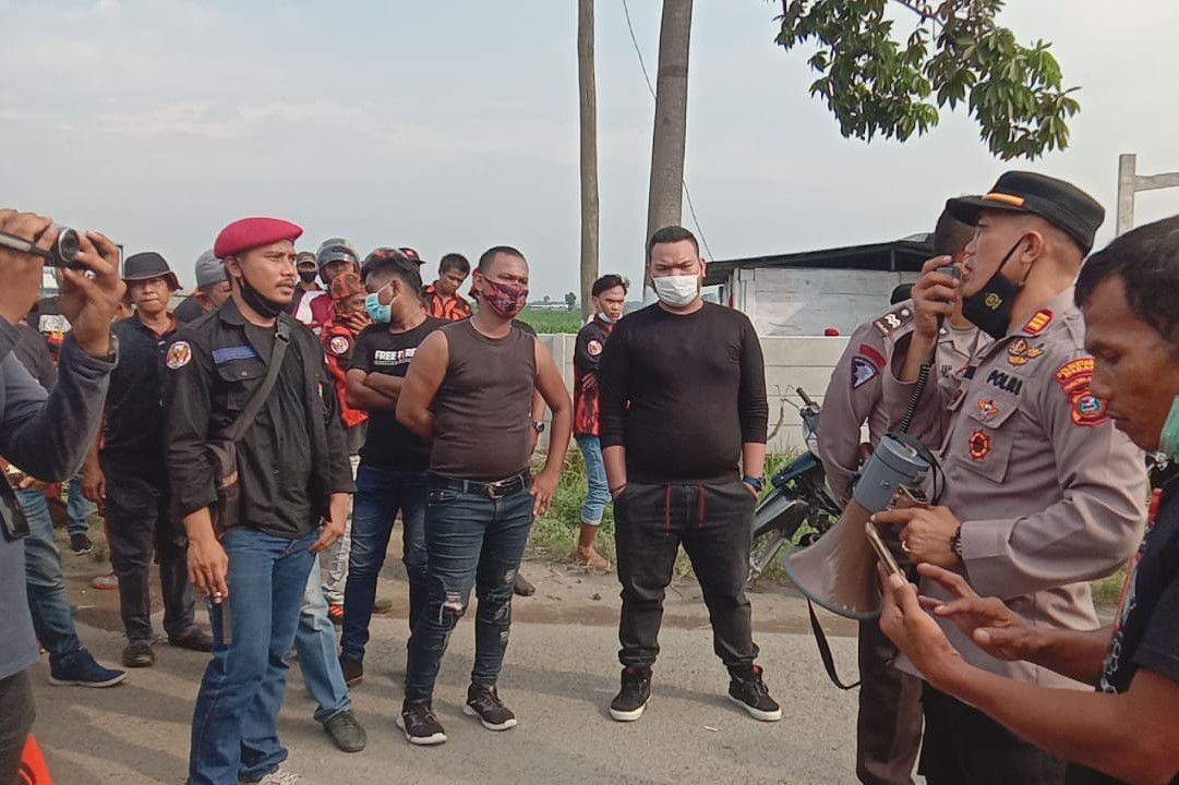 Mengetahui hal itu, personel gabungan dari Polsek Percut Sei Tuan yang dipimpin Kapolsek Percut, AKP Janpiter Napitupulu dan personel Koramil Kodim 0201-13/PST tiba di lokasi dan langsung membubarkan kedua ormas yang bersiteru tersebut.