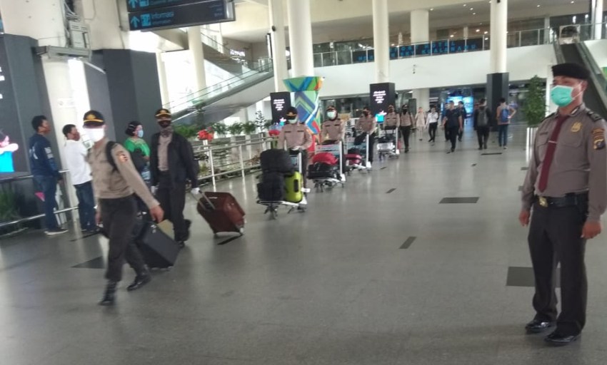 Setibanya di Terminal Kedatangan Domestik Bandara International Kualanamu, 21 orang Siswa SIP tersebut mengisi data Kartu Kewaspadaan Kesehatan, pemeriksaan suhu tubuh (Thermal Scanner) yang dilakukan Kantor Kesehatan Pelabuhan KKP Bandara Kualanamu serta penyemprotan disinfektan yang dilaksanakan Biddokkes Polda Sumut.