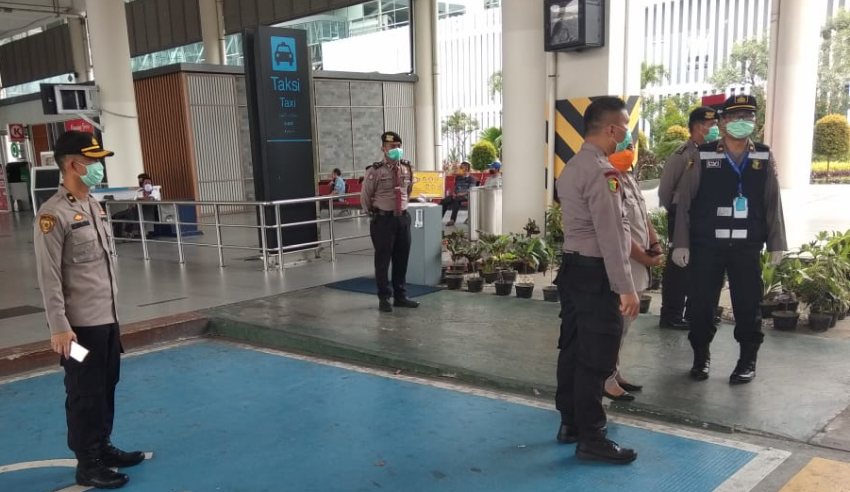 Dalam rangka mengantisipasi penyebaran virus corona (Covid-19), sterilisasi dilakukan terhadap sejumlah 21 orang siswa Sekolah Inspektur Polisi (SIP) TA 2020 yang baru tiba di Bandara Kuala Namu Internasional (KNIA), Kamis (16/04/2020). Rombongan siswa SIP tersebut diketahui berangkat dari Bandara Internasional Soekarno Hatta (CGK) dengan menggunakan pesawat Batik Air dengan nomor penerbangan ID-6886.