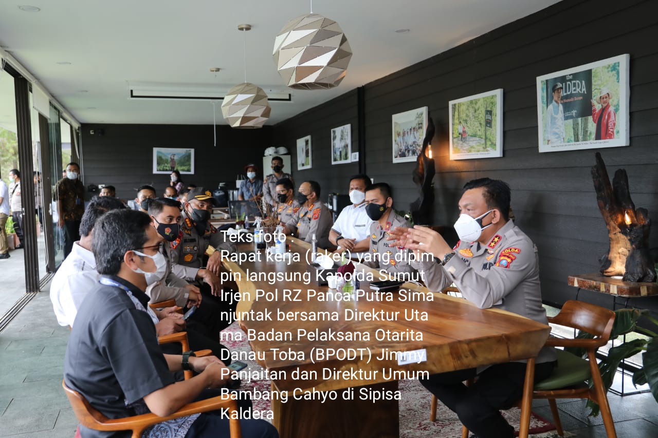 Langkah percepatan itu dibuktikan dengan digelarnya rapat kerja (raker) yang dipimpin langsung Kapolda Sumut Irjen Pol RZ Panca Putra Simanjuntak bersama Direktur Utama Badan Pelaksana Otarita Danau Toba (BPODT) Jimmy Panjaitan dan Direktur Umum Bambang Cahyo di Sipisa Kaldera , Sabtu (3/7/2021).