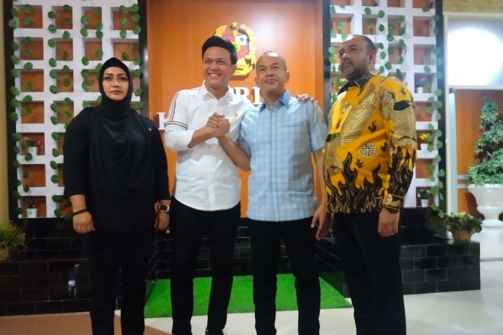 Dua anggota DPRD Medan bersalaman David Roni Ganda Sinaga dan Dodi Robert Simangunsong yang sebelumnya nyaris adu jotos. (Ist)