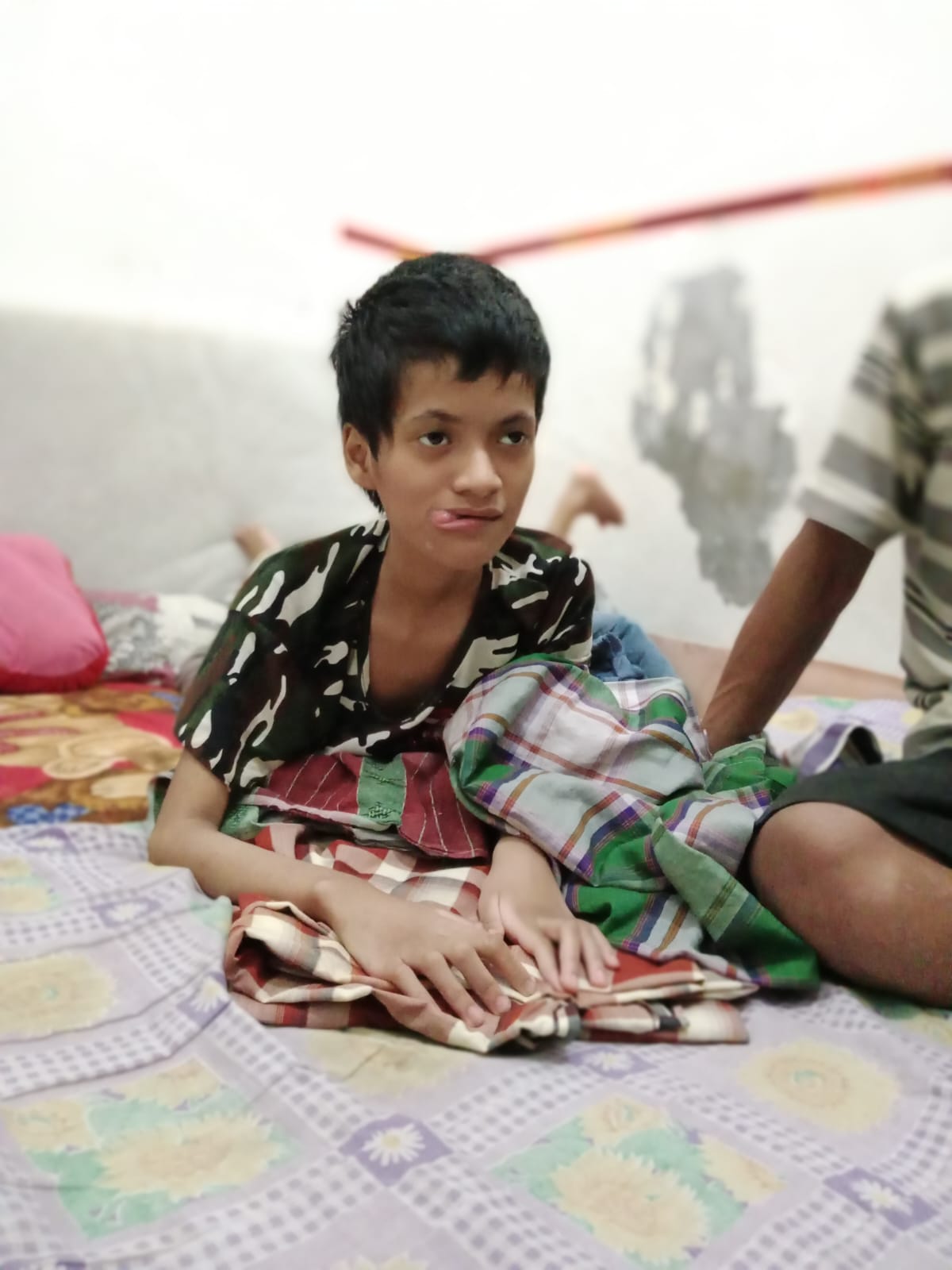 “Nengok anakku ini, aku berserah saja pada Tuhan. Aku gak tahu lagi harus apa. Kalaupun dia gak bisa sembuh lagi, paling enggak, aku berusaha sekuat tenaga untuk mencukupkan kebutuhan dia sehari-hari,” ujar Erianto.